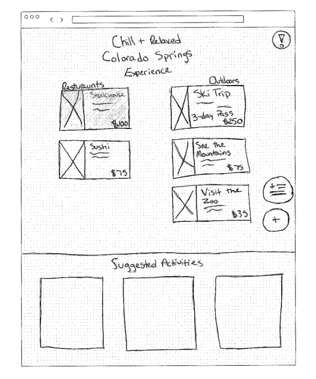 A semi-structured concept that allowed users to prioritize experience cards and loosely plan for a vacation.
